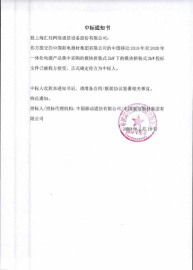 中标喜讯——汇珏科技中标中国移动一体化电源