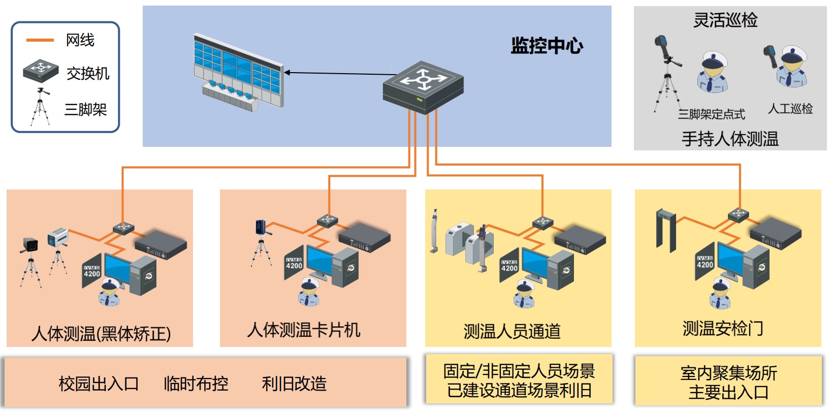 适用场景:医院、学校、公安、政府、企业园区、机场、火车站、客运站、地铁站等安检入口临时布控、利旧改造