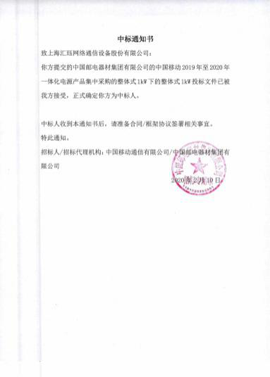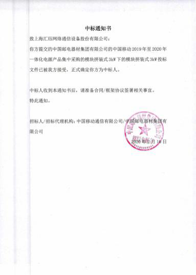 中标喜讯——汇珏科技中标中国移动一体化电源