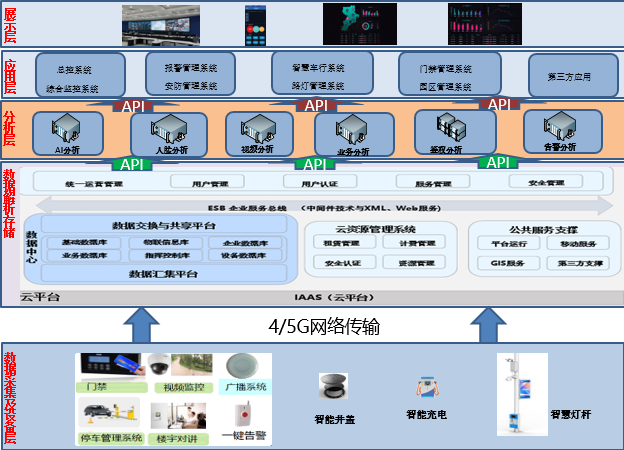 3.园区综合安防:园区综合安防是指通过创建园区情境智能整体解决方案,使园区主管部门具备实时、准确的情境意识,实现先进的园区安防集成,并融合不同类型的实时传感器和数据采集子系统。